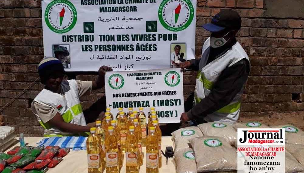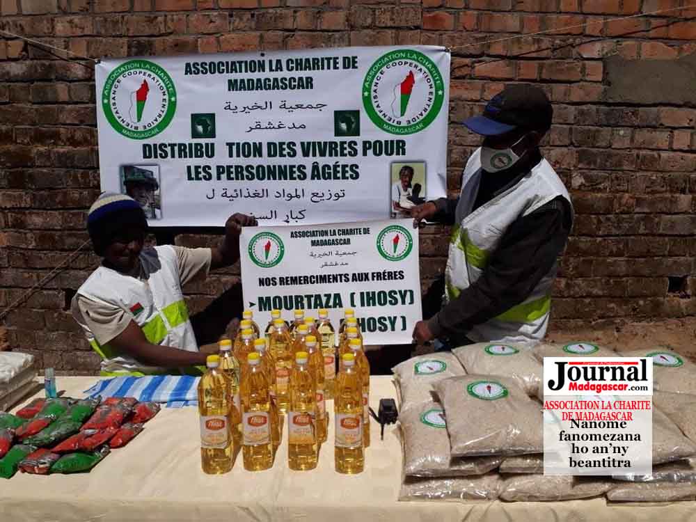 L’Association La Charité de Madagascar poursuit ses actions sociales dans la riposte contre la COVID-19. Elle a procédé à la distribution de vivres et de masques aux personnes âgées, le samedi 15 août 2020 au sein de son siège à Andranomena Ambony. Il s’agit du riz, d’huile, du sucre ainsi des masques lavables. « Je tiens à remercier nos frères Mourtaza et Hozaifa d’Ihosy pour leur contribution. La distribution se poursuivra samedi prochain dans d’autres quartiers d’Antananarivo », affirme le Président de l’association, Zouber Assenjee.