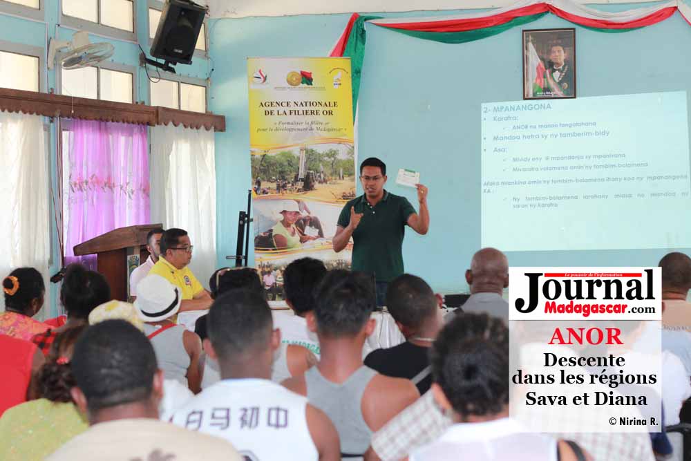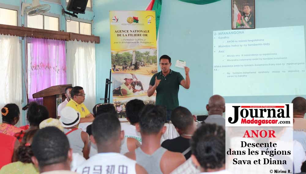 En mois de juillet 2019, l’équipe de l’Agence Nationale de la Filière Or (ANOR) a effectué une descente dans les régions Sava et Diana. Le périple a pour objectif de formaliser les activités aurifères dans 13 communes éparpillées. Convaincus de l’importance de l’harmonisation de la filière dans ces Régions, les opérateurs sont venus en masse pendant les réunions tenues par l’ANOR, en présence des autorités locales, pour comprendre, de prime abord, la raison d’être de cette Agence et ainsi de s’imprégner des textes régissant la filière or, en second lieu pour connaître les avantages et les responsabilités afférents aux activités.