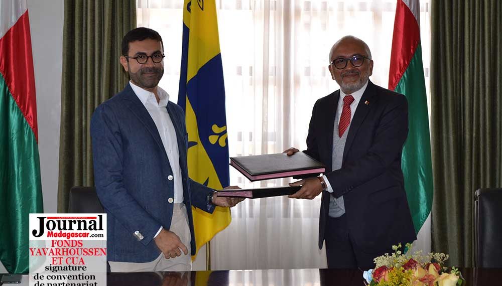 « Une sculpture pour rêver la ville, rêver la capitale et surtout le monde ». La Commune Urbaine d’Antananarivo (CUA) et le Fonds de Dotation HY dit « Fonds Yavarhoussen » a procédé, ce mardi 14 Septembre 2021 à la signature de convention de partenariat pour la promotion de l’art et de la culture à Madagascar. Une œuvre particulière réalisée par un artiste de renommée internationale sera installée au cœur de la ville d’Antananarivo. « Ici nous portons tous les rêves du monde » de Joël Andrianomearisoa est « une sculpture pour rêver la ville, rêver la capitale et surtout le monde. Parler aux habitants d’Antananarivo et songer à de nouveaux désirs. Une proposition dans un jeu du temps et de l’espace urbain, traverser le temps et surtout parler du présent ». « Ici c’est ici, d’ici nous regardons le monde, d’ici nous rêvons aussi le monde. Songeons, parlons rêves, rêvons, car c’est en rêvant que nous pourrons affirmer un nouveau souffle », souligne Joël Andrianomearisoa . La production et l’installation de cette œuvre ont reçu le mécénat exclusif du Fonds Yavarhoussen. L’œuvre est également un prêt de la Collection Yavarhoussen. « Ici, nous portons tous les rêves du monde car ici, sur cette île-continent, entre les côtes africaines et l’immensisté de l’Océan Indien, nous portons tous, un rêve que cette terre nous permet de réaliser. Ici », a dit Hasnaine Yavarhoussen, Président du Fonds Yavarhoussen et Directeur général du Groupe Filatex. La sculpture installée sur l’Esplanade de l’hôtel de ville Analakely sera inaugurée le samedi 9 octobre 2021.