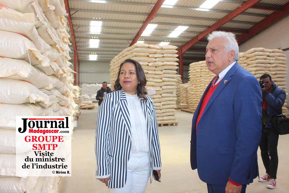 Le ministre Lantosoa Rakotomalala a fait le tour des usines du groupe SMTP, à savoir les usines de fabrication de chocolat, de farine de maïs (AGRIKOBA), des alimentations animales (AGRIVAL) ainsi que l’usine de transformation de plastique. Cette visite a pour but de mesurer les efforts fournis par le groupe SMTP, l’un des fleurons de l’industrie à Madagascar pour développer ses offres et pour améliorer la qualité de ses produits. Selon l’explication du personnel de la SMTP, les 90 % de chocolats fabriqués sont exporté aux Etats- Unis. L’AGRIVAL produit 10 tonnes des alimentations animales par heure. Le Président de Directeur général du groupe SMTP, Danil Ismaël témoigne que l’avenir de Madagascar dépend de l’industrialisation. Elle permet non seulement de stimuler la croissance économique, mais également de créer des emplois.
