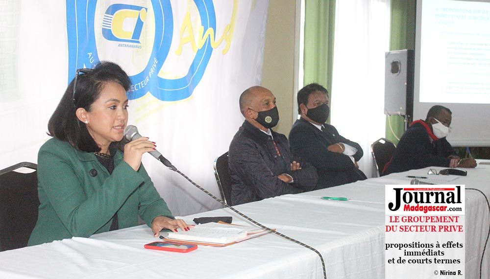 Maintenir le maximum d’emplois. Le groupement du secteur privé notamment GEM (Groupement des Entreprises de Madagascar), le FIVMPAMA (Fivondronan’ny mpandrandraha Malagasy) et les travailleurs avancent des propositions à effets immédiats et de courts termes face aux impacts du COVID-19 sur les entreprises. Dès la mise en place des mesures d’urgence sanitaires, les phénomènes suivants sont apparus : ralentissement ou suspension d’activités, baisse importante des chiffres d’affaires, suspension d’opérations d’investissement, suspension ou annulation de contrats internationaux », a expliqué Thierry Rajaona, Président du GEM lors d’une conférence de presse, le 19 juin 2020 à Antaninarenina.
