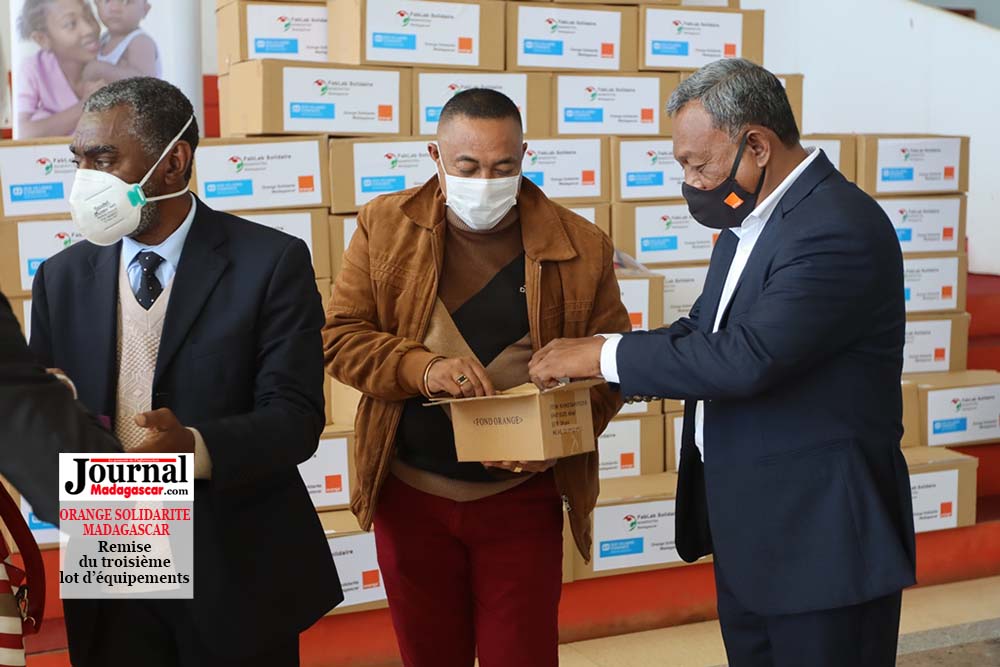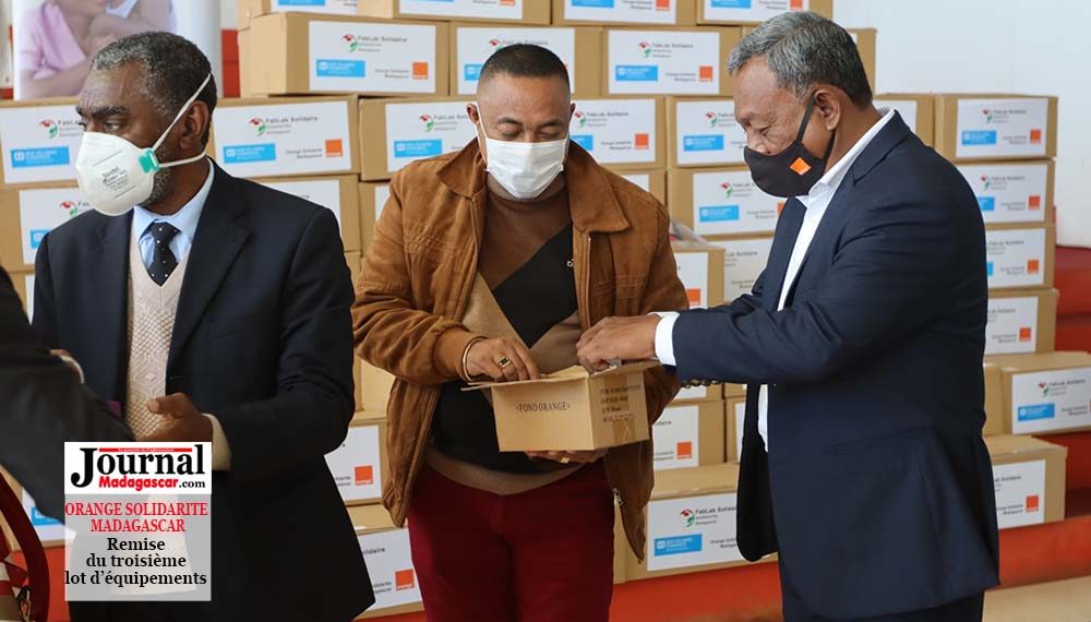 Confectionnées au sein du Fablab Solidaire « Mamiratra ». Orange Solidarité Madagascar a remis plus de 2.000 visières de protection et 21.000 flacons de gel hydroalcoolique au Centre de Commandement Opérationnel (CCO) à Ivato, le 13 août 2020. Ces dons viennent compléter un premier lot d’équipements remis le 18 avril 2020, et un deuxième lot remis le 16 juin 2020. Ils sont destinés à des centres de soins dans les régions Analamanga, Itasy, Vakinankaratra, Alaotra Mangoro, Atsinanana, Atsimo Andrefana, Anosy, Diana, Analanjirofo, Bongolava, Menabe, Sava, Sofia, Haute Matsiatra et Boeny. SOS Villages d’Enfants et Compassion Madagascar bénéficient également de ces dons. « Orange Madagascar maintient son engagement auprès des autorités et des populations dans le cadre de la lutte contre l’épidémie de Covid-19, en accompagnant au mieux les acteurs engagés et en première ligne dans cette crise sanitaire », selon un communiqué de presse d’Orange Madagascar.
