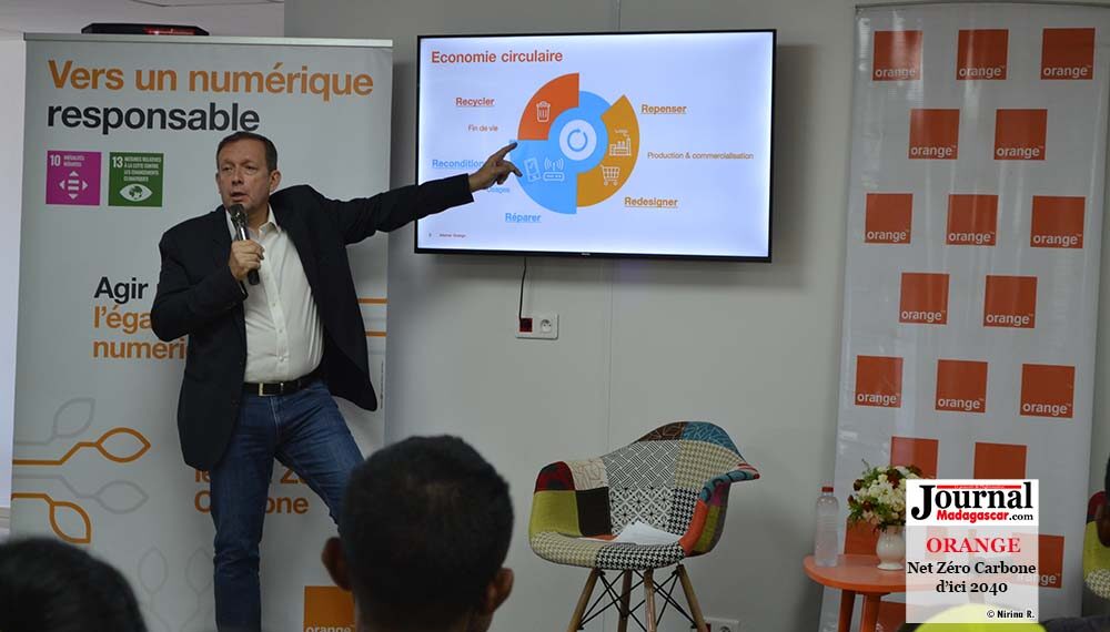 À travers le numérique, Orange apporte des solutions pour lutter contre le réchauffement climatique et s’est engagé à être Net Zéro Carbone d’ici 2040 avec dix ans d’avance sur les objectifs du secteur des télécommunications. Cela se traduit par des efforts considérables pour réduire les émissions directes et indirectes de CO2, avec des premiers résultats à atteindre dès 2025.ALe Directeur Général d’Orange Madagascar, Frédéric Debord, a présenté les grandes lignes des engagements pris par l’opérateur en matière de lutte contre le réchauffement climatique à travers des initiatives concrètes tel que l’économie circulaire, et le recours aux énergies renouvelables, ce mardi 06 décembre 2022, deux jours avant la journée mondiale du Climat, célébrée le 8 décembre. Il a indiqué que Orange agit sur tous les pans de l’économie circulaire. Dans ses cœurs de métiers (réseaux, centres de données…), l’opérateur utilise de plus en plus d’équipements reconditionnés. Depuis plus de 5 ans, Orange Madagascar a régulièrement recours aux équipements reconditionnés pour être utilisé dans les activités de bureautique et pour les équipements de transmission réseau. Ce qui permet de réduire la consommation de matière première, réduire la réduction de l’utilisation de composants rares, et de réduire l’empreinte carbone liée à la fabrication, tout en réduisant les coûts. Entre 2018 et 2022, il est estimé une économie financière de 62% par an en moyenne. Orange Madagascar bénéficie également d’un accord en synergie avec le Groupe Orange, pour la réutilisation des équipements radio d’Orange Réunion. Cet accord portant sur 3 ans prévoit le démantèlement et la réutilisation des équipements radio 3G et 4G de Huawei, initialement à La Réunion et qui seront déployés à Madagascar. Cette réutilisation fournit une opportunité d’optimisation des investissements en équipement, permettant une économie de quasiment 1,3 millions d’euros. A part la réutilisation des équipements de télécommunications, Orange Madagascar a aussi recours à la distribution de Smartphones reconditionnés. Depuis le début de l’année 2022, ces smartphones sont disponibles et sont accompagnés d’un service après-vente d’une durée de 12 mois, avec un prix très accessible, afin de favoriser l’inclusion numérique des Malagasy.