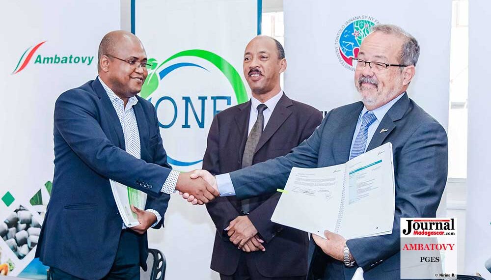 Le Président d’Ambatovy, Gustavo Gomes, et le Directeur Général de l’Office National pour l’Environnement (ONE), Rija Herisolo Rakotoson, ont procédé à la signature des nouveaux Plans de Gestion Environnementale Spécifiques (PGES) mis à jour d’Ambatovy, le 31 mars 2023 au bureau de l’Office National pour l’Environnement à Analakely, Antananarivo. Les PGES mis à jour sont définis pour la période de 2023 à 2027 et concernent les différentes composantes du projet : Mine, Pipeline, Usine, Port et Parc à résidu. Ils constituent des déclinaisons détaillées du Plan de Gestion Environnementale et de Développement Social (PGEDS) qui définit les mesures et engagements environnementaux et sociaux annexés au permis environnemental d’Ambatovy, délivré en 2006.