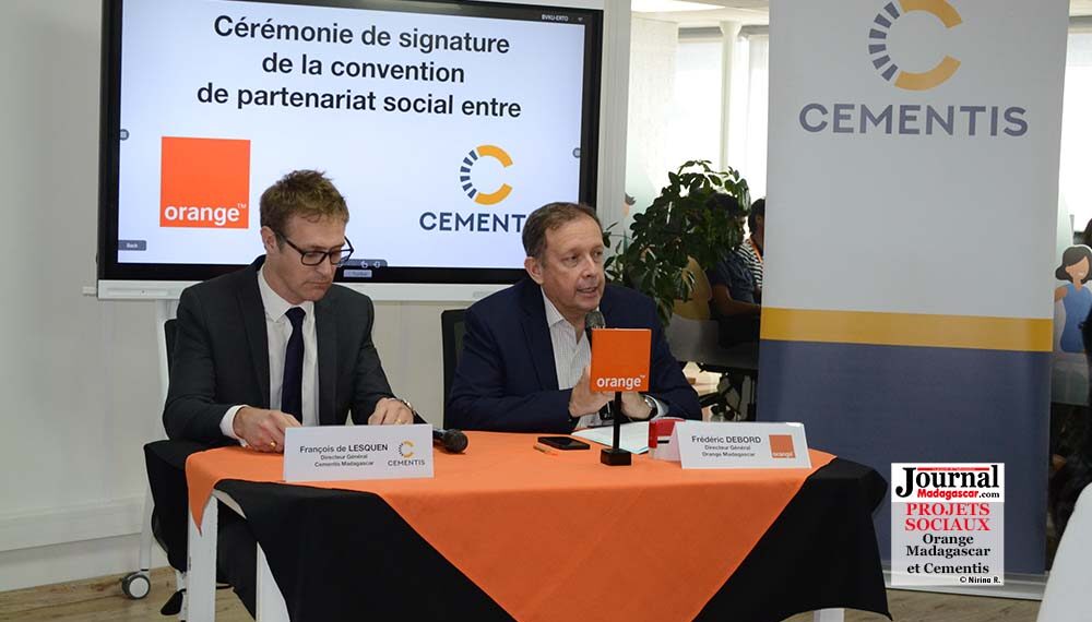 Dans le cadre de ce partenariat, la filiale du groupe Cementis leader dans la production et la distribution de ciment et matériaux cimentaires dans l’océan Indien mettra à disposition son expertise technique, ainsi que des tarifs préférentiels sur sa gamme de produits de construction, en phase avec sa stratégie Responsabilité Sociétale des Entreprises (RSE). « Nous avons un objectif commun et nous allons travailler ensemble pour le développement de Madagascar et la population malagasy », indique François de Lesquen, Directeur Général du Cementis. Les deux sociétés partagent les mêmes valeurs et les mêmes engagements sociaux. A terme, ils vont être appelés à collaborer dans le cadre d’autres projets, notamment des travaux de construction financés par Orange Madagascar dans les zones d’intervention de Cementis Madagascar, ou encore le cofinancement de l’implémentation d’un Village Orange. « Orange Madagascar s’engage également à doter des outils numériques aux écoles et bibliothèques construites par Cementis », ajoute Valérie Ranaivoson, Responsable du Mécénat d’Orange Madagascar. L’accord a une durée d’un an renouvelable.