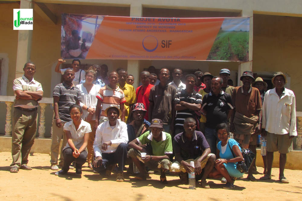 AVOTIA avec l’acronyme de mots malgaches Ampio (aider), Vonjeo ny (secourir, protéger), Olona (humain), Tanàna (village), Iray (unique), et Aminao ...