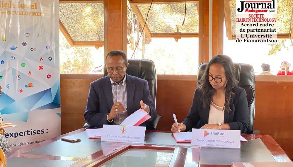 Création d’emploi. L’Université de Fianarantsoa et la société HaiRun Technology ont signé un accord cadre de partenariat, ce mardi 19 octobre 2021 à Fianarantsoa. Hairun Technology, est une entreprise de service du numérique, fondée en 2016, implantée à Madagascar et représentée en France. Plusieurs programmes seront mis en place avec l’Université de Fianarantsoa dont le plus important sera le recrutement des étudiants issus respectivement de l’ENI (Ecole nationale d’Informatique) et de l’EMIT (Ecole de Management et d’Innovation Technologique) de l’Université pour effectuer des stages au sein de HaiRun Technology. L’on distingue ici, des stages de fin d’études et des stages d’embauche comme une phase de pré-recrutement. Ayant conscience de l’insuffisance des débouchés dans pas mal de région de notre île, ce système de rapprochement n’est qu’une première étape dans cette démarche collaborative. « …En tant qu’acteurs au développement économique, nous sommes honorés d’être au premier rang de ce partenariat public-privé, et pouvoir soutenir les enseignements supérieurs, pour une amélioration en continu d’un écosystème, où l’innovation technologique joue un rôle très important… », affirme Chantal Rakotondrahaja, Directeur Général de Hairun Technology.