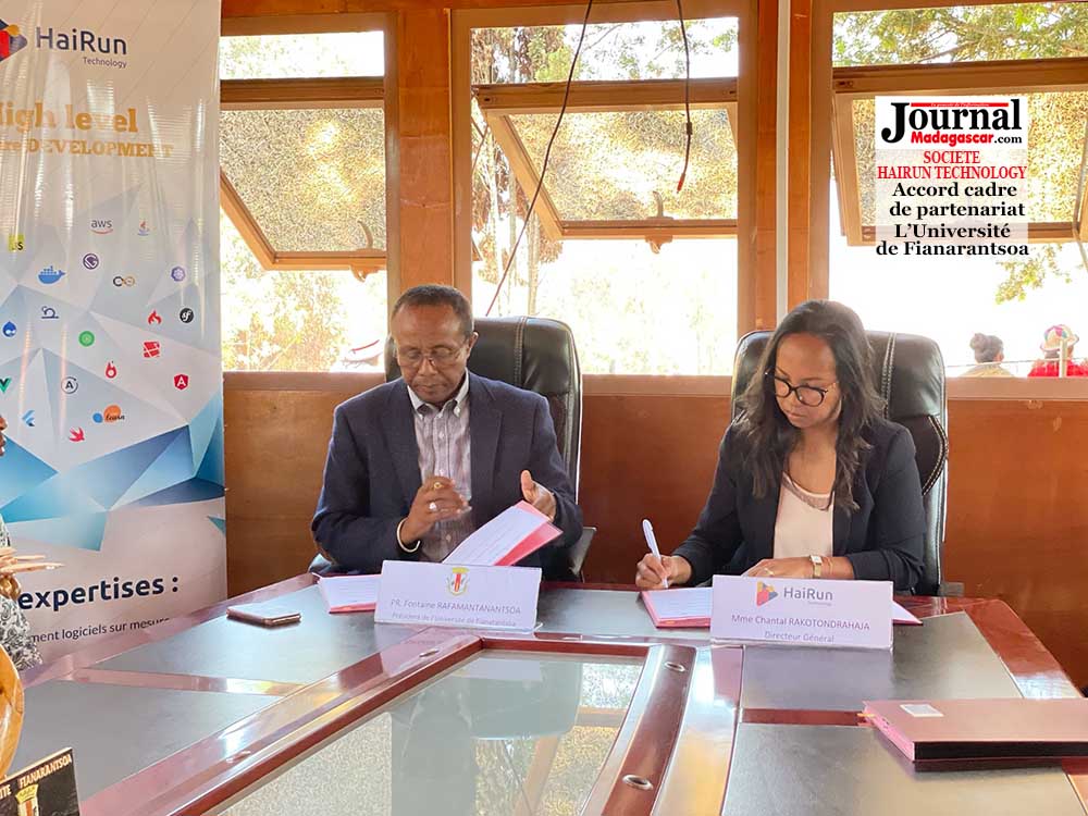 Création d’emploi. L’Université de Fianarantsoa et la société HaiRun Technology ont signé un accord cadre de partenariat, ce mardi 19 octobre 2021 à Fianarantsoa. Hairun Technology, est une entreprise de service du numérique, fondée en 2016, implantée à Madagascar et représentée en France. Plusieurs programmes seront mis en place avec l’Université de Fianarantsoa dont le plus important sera le recrutement des étudiants issus respectivement de l’ENI (Ecole nationale d’Informatique) et de l’EMIT (Ecole de Management et d’Innovation Technologique) de l’Université pour effectuer des stages au sein de HaiRun Technology. L’on distingue ici, des stages de fin d’études et des stages d’embauche comme une phase de pré-recrutement. Ayant conscience de l’insuffisance des débouchés dans pas mal de région de notre île, ce système de rapprochement n’est qu’une première étape dans cette démarche collaborative. « …En tant qu’acteurs au développement économique, nous sommes honorés d’être au premier rang de ce partenariat public-privé, et pouvoir soutenir les enseignements supérieurs, pour une amélioration en continu d’un écosystème, où l’innovation technologique joue un rôle très important… », affirme Chantal Rakotondrahaja, Directeur Général de Hairun Technology.